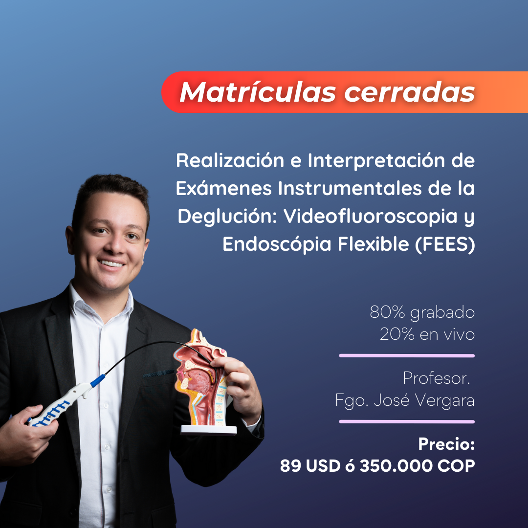 TOME ESTE CURSO250 SEATS LEFT$100.00El precio original era: $100.00.$75.00El precio actual es: $75.00.Realización e Interpretación de Exámenes Instrumentales de la Deglución: Videofluoroscopia y FEES