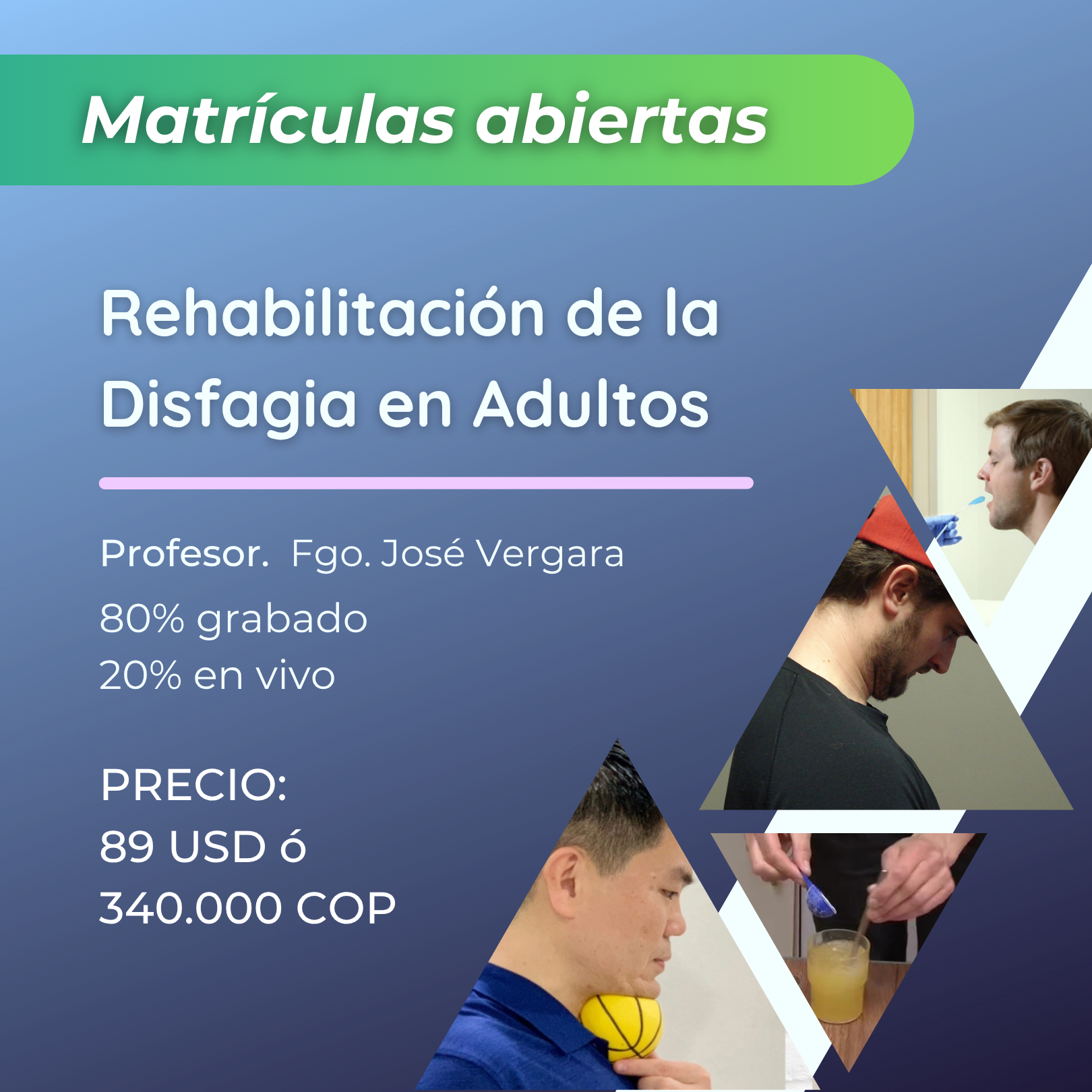 Ahora están oficialmente abiertas las matrículas para el curso de rehabilitación de la deglución más famoso de toda América Latina. Este es un entrenamiento 100% online en el cual se enseñan los métodos tradicionales y las nuevas tendencias en el campo de rehabilitación de la deglución en la población adulta/anciana. Te enseñaremos a desarrollar raciocinio clínico que te permita comprender las necesidades de tu paciente y montar planes de rehabilitación efectivos.